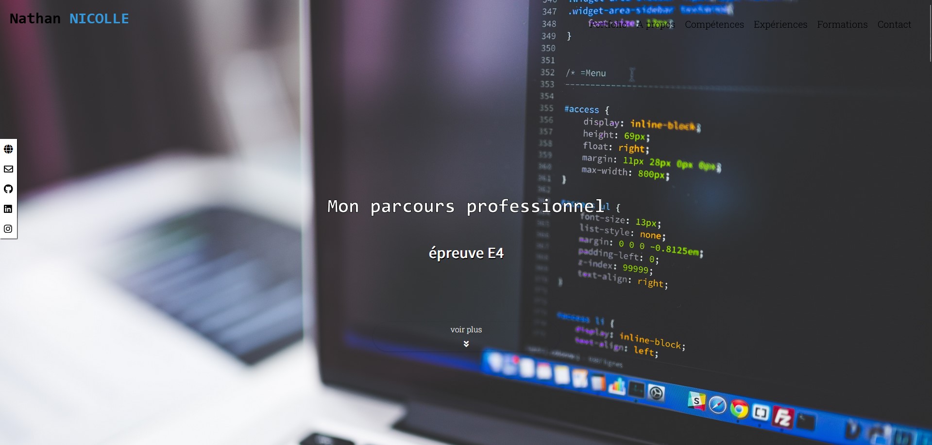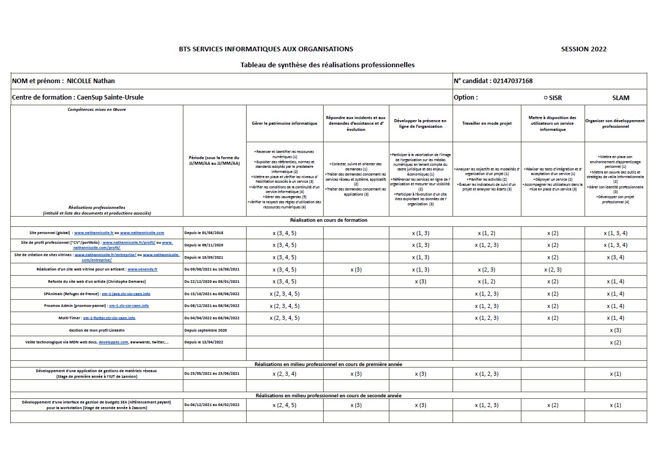 Ce site était au départ un projet de première année, il me sert actuellement de "porte-étendard" auprès des recruteurs. Je l'ai amélioré au cours de ces deux années et il est pour moi bien plus qu'un projet d'Atelier de Professionnalisation. C'était à l'origine une onepage, actuellement j'y ai ajouté le portfolio que vous visionnez dans le cadre de cette épreuve afin de plus détailler les compétences abordées au cours de mes deux années de BTS (stages, cours...).