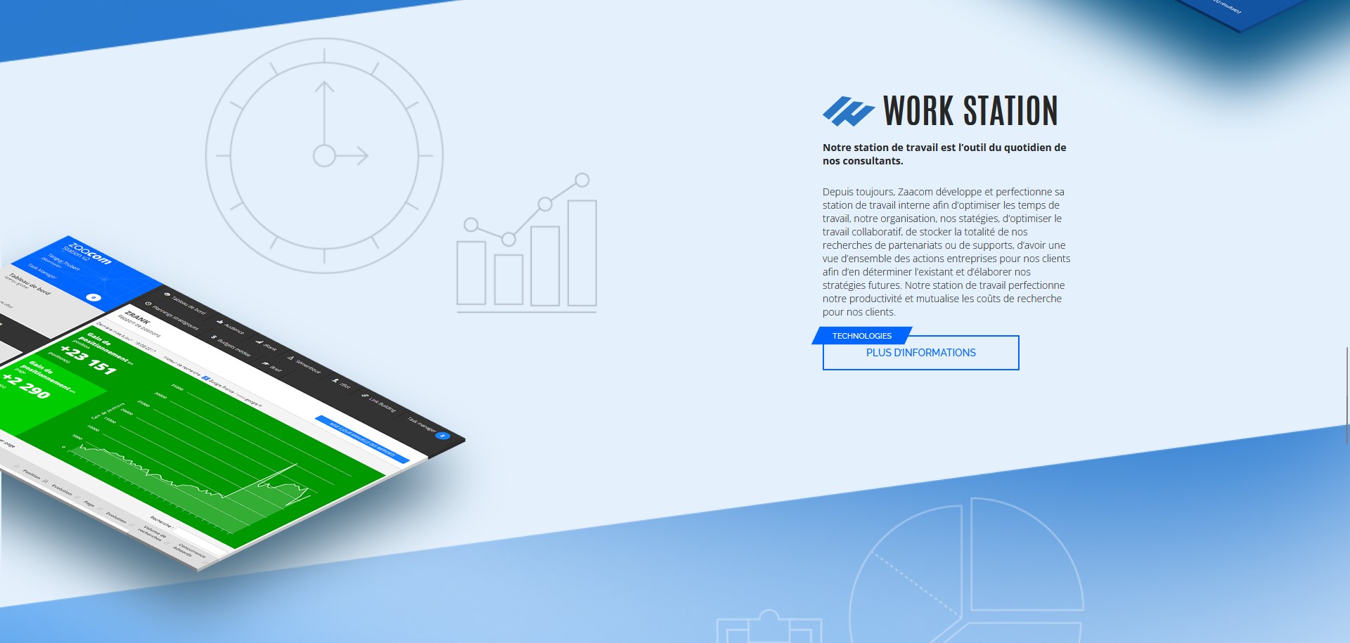 Zaacom utilise et développe en interne un outil de travail nommé WorkStation. Cet outil regroupe beaucoup d’informations telles que les ventes, le budget, le temps alloué aux prestations… Pour ma part, ma mission consistait en l’affichage, l’ajout et la modification des informations de budget (achats/prévisions) contenues en base de données (puis dans le futur elles seront ajoutées automatiquement en BDD). Le budget correspond à celui de la partie SEA (référencement payant). Il est mensuel mais parfois aussi sur 1 an ainsi les informations doivent être affichées par mois ou par an selon la plage de dates sélectionnée. L’affichage doit se faire dans un tableau.